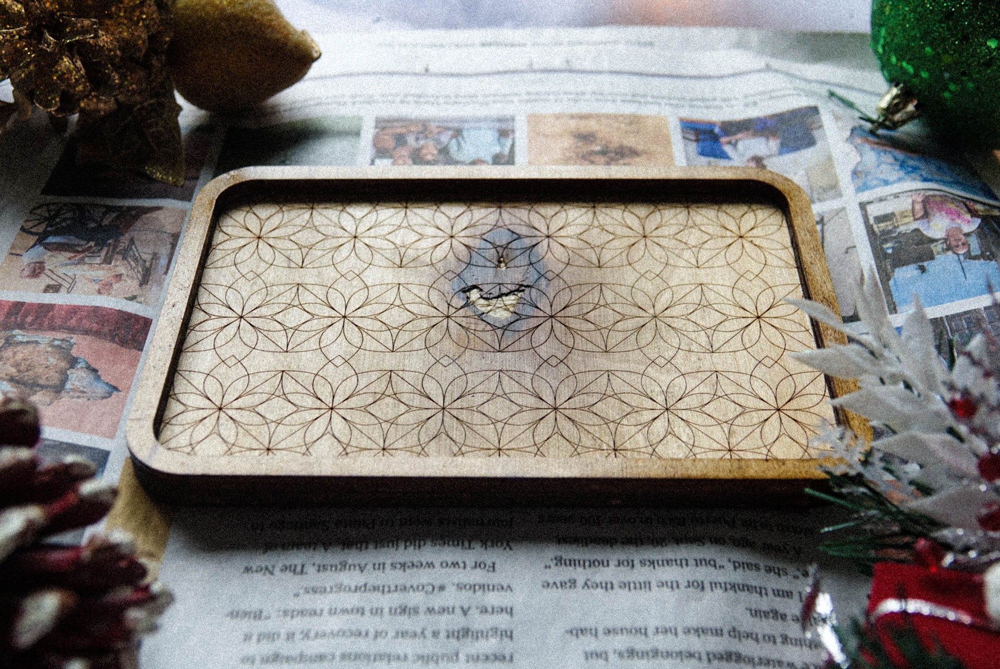 Recycled Maple Wood Flower of Life Mini Tray - 6x4 in